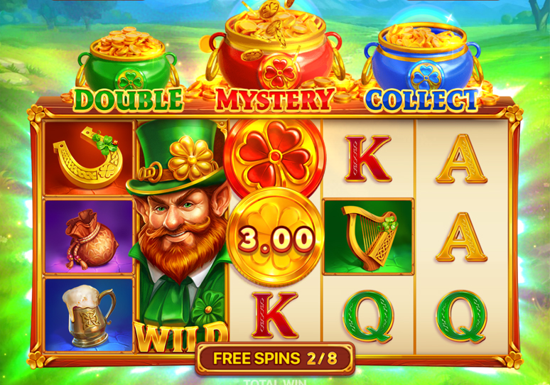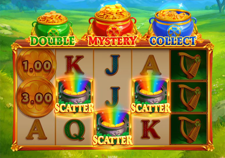 Featuring a 5x3 reel grid and 25 pay lines, it offers the chance to win big with the leprechaun's famous three pots of riches.