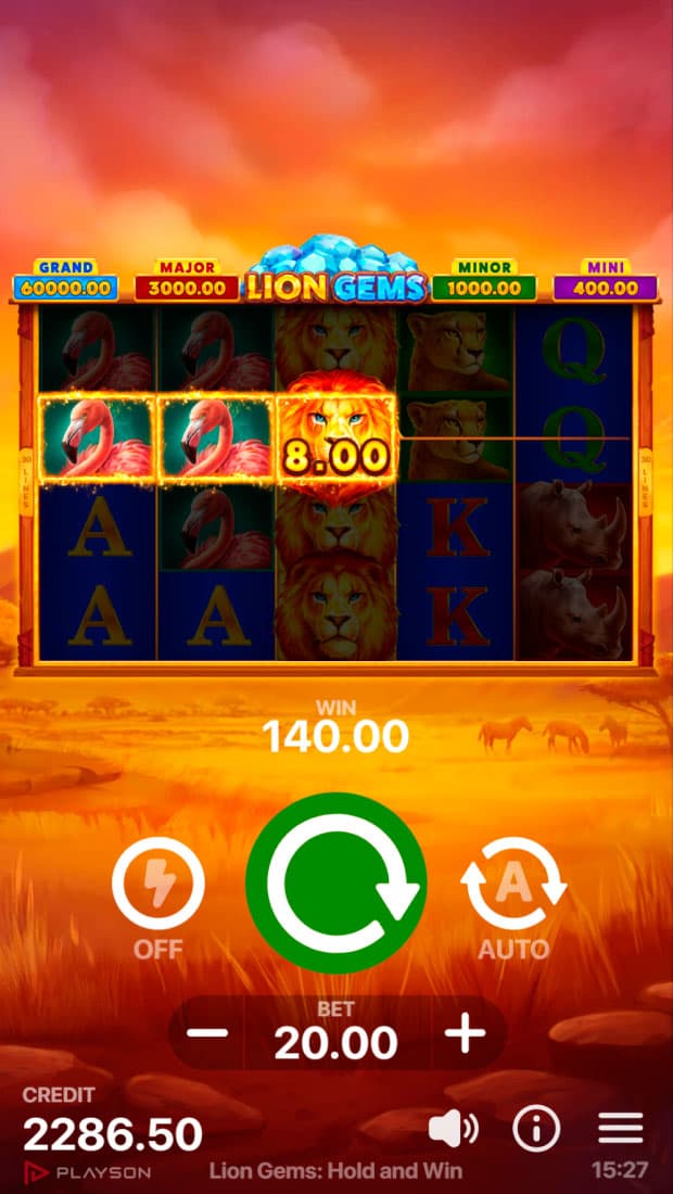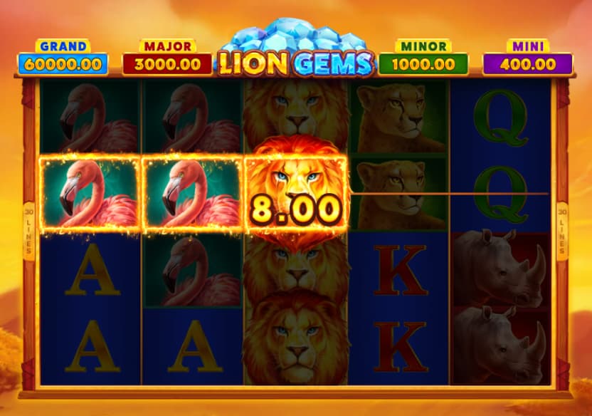 The 5x4 Lion Gems: Hold and Win is exciting and full of adventures with animals being the main heroes across 30 paylines.