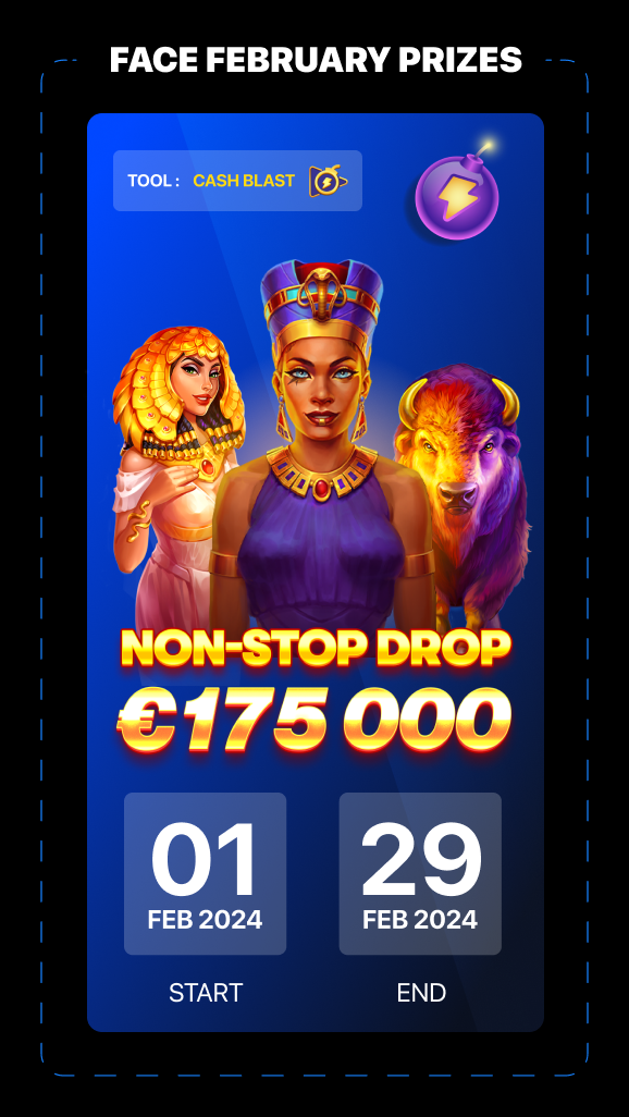 This sub-promo is part of our year-long promotion "Non-Stop Drops & Races €4,000,000". It is based around one of our promotional tools offering − Cash Blast