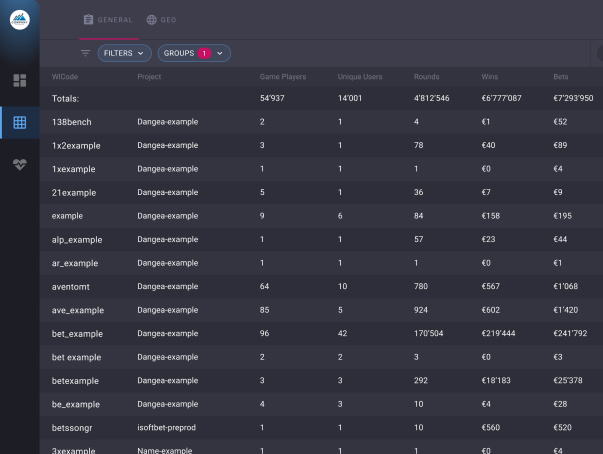 Get full-scale analytics of the Casino, Games, Subsidiaries, and their dynamics in various dimensions. See bets dynamics hourly, daily, and monthly and compare the data across different countries and regions. Analyse promotional offers results