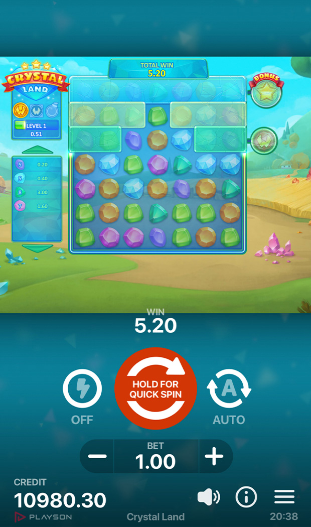 The Bonus Round clears the game field from crystals to open treasure chests.