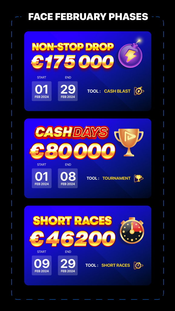 We are running our biggest promotion ever and we would like to invite you to take part in it! Over the year we are distributing a staggering €4,000,000 in cash prizes with the aim of engaging, retaining and increasing revenue generated by all player types.