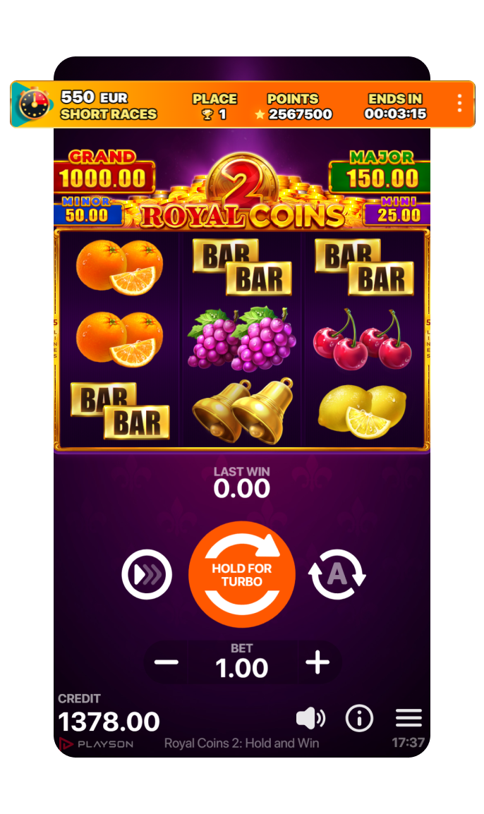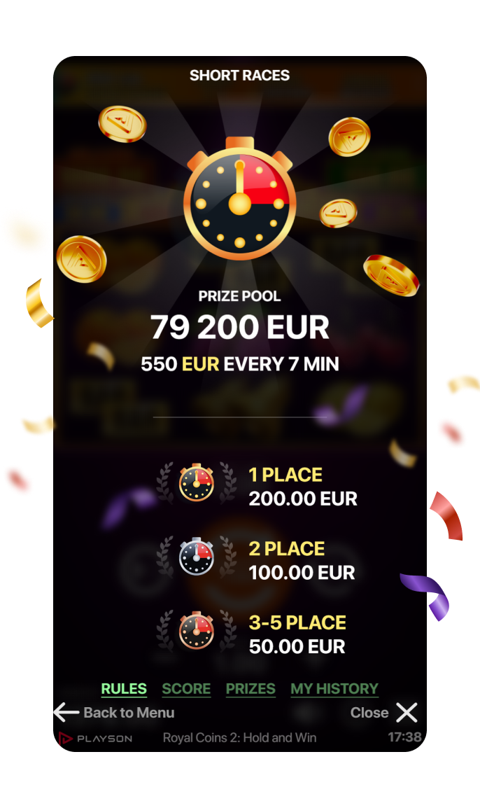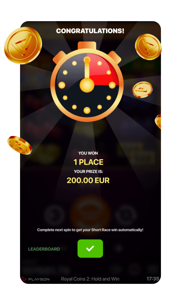 Provides efficient management of primetimes and downtimes. Short Races do not influence Game RTP and are available across the entire Playson portfolio