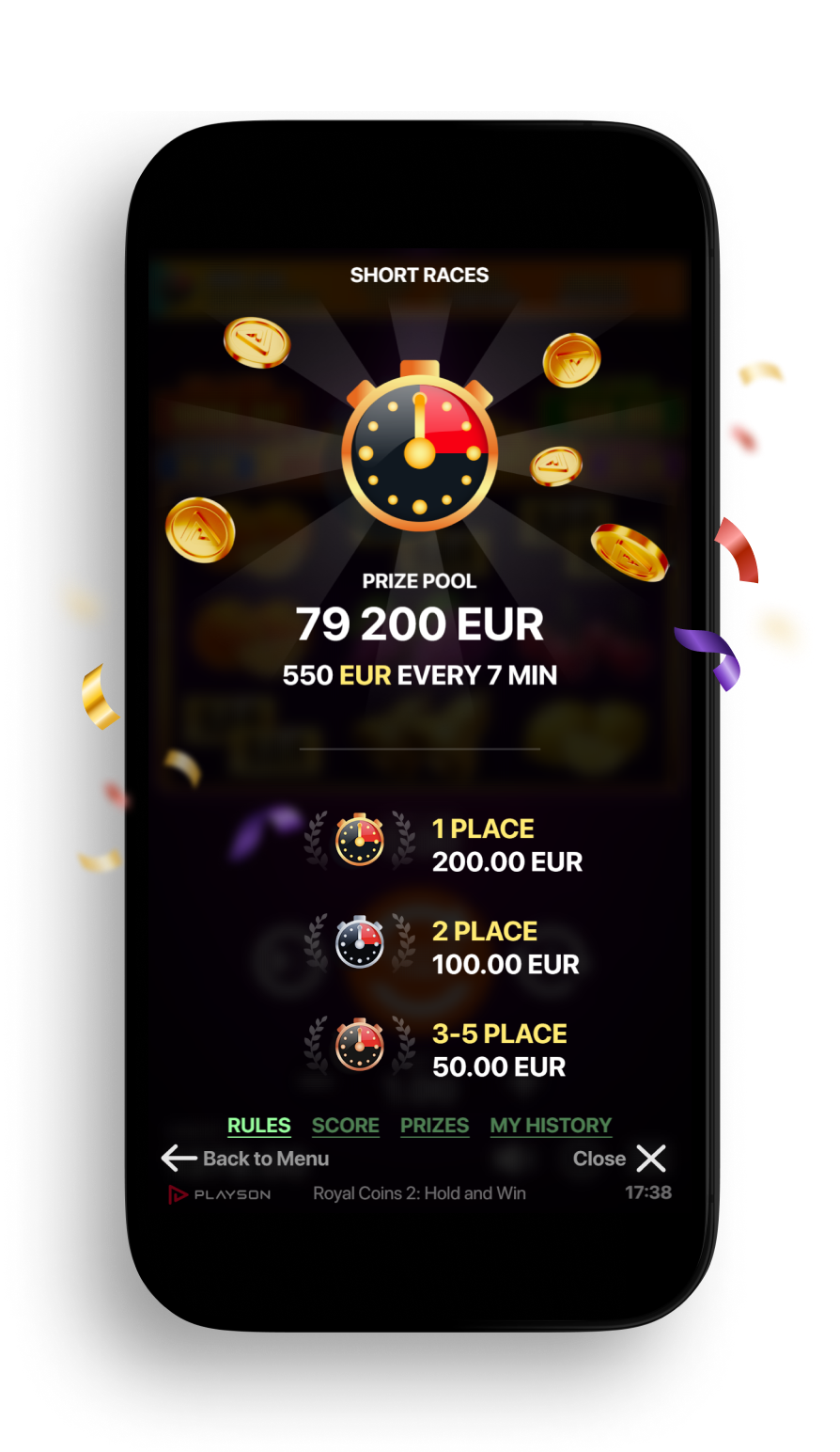 Tailor your Short Races experience to your liking! Set your own minimum entry bet and spins to enter. Personalize the look with a customized design, and choose between network or local use. For an extra thrill, combine it with Tournaments, Cash Blast, and Reel of Fortune. It's all about crafting your unique gaming adventure! You can also change: